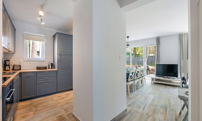 Located in Dziwnów, this 4-bedroom, 1-bathroom apartment lets you experience it all. Fans of nature and the outdoors will love being 26 minutes by car from Pobierowo Beach and 10 minutes from Dziwnow Beach. You'll easily make the 11-minute drive to Viewing Platform or the 16-minute drive to Miedzywodzie Beach.