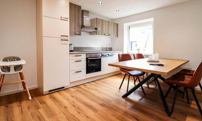 Look forward to a relaxing break in this friendly holiday apartment. Enjoy the marvellous mountain scenery, explore nature or simply unwind. Here you will find the perfect setting for relaxing days as a couple or with the family. Make yourself at home in the spacious living and dining area and prepare meals together in the practical kitchen with dining table. Spend a cosy evening watching TV or relaxing with a fun board game. The furnishings with wooden floors and warm colours create an inviting atmosphere.