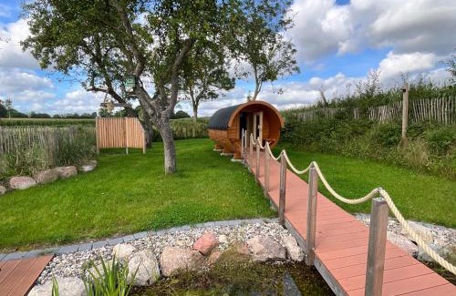 Ferienwohnung „Klüterkamer“ - Hof Mühlenkoppel is a recently renovated apartment in Hasselberg where guests can make the most of its pool with a view, garden, and barbecue facilities. A sauna and a bicycle rental service are available for guests. There's an outdoor fireplace and guests have access to free Wifi, free private parking, and an electric vehicle charging station. Providing a terrace and pool views, the spacious apartment includes 1 bedroom, a living room, cable flat-screen TV, an equipped kitchenette, and 2 bathrooms with a walk-in shower and a hot tub. Guests can enjoy an ambient stay in their soundproof room with tiled floors and a fireplace. The property has an outdoor dining area. Guests at the apartment will be able to enjoy activities in and around Hasselberg, like cycling and hiking. Outdoor play equipment is also available for guests at Ferienwohnung „Klüterkamer“ - Hof Mühlenkoppel. Kronsgaard Beach is 1.6 miles from the accommodation, while University of Flensburg is 26 miles away.