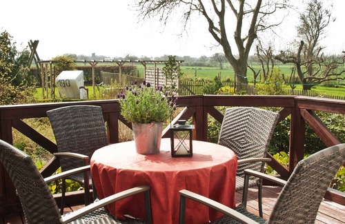 The 4 star apartment Mühlenblick offers 2 to 3 people plenty of space to relax. Modern and rustic elements are very stylish combined with interesting color accents. An open living / dining area with adjoining kitchen 1 bedroom (1x double bed, 1x extra bed) and 1 shower room provide a pleasant holiday comfort. The beautiful landscape of the area can be enjoyed on the private terrace and the seats in the yard and garden. Here garden furniture for relaxing moments and a wide view over the fields and meadows. Of course, Wi-Fi is available free of charge and there are parking spaces in front of the house. Washing machine and dryer can be used for 3, - € per course.