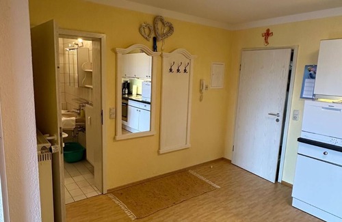 Ihre Ferienwohnung ist mit einer hochwertigen Küche, sowie einer schönen Essgruppe eingerichtet. Dieser Wohn-Küchenbereich kann vom Relax-/Schlafzimmer durch eine Trennwand abgetrennt werden. Dieser Relaxbereich ist liebevoll ausgestattet mit einem LCD/SAT-Fernseher und einem großen Doppelbett mit Funktionslattenrost. Das schöne Badezimmer verfügt über eine Badewanne mit Duschfunktion und WC sowie Kosmetikspiegel und Fön. Handtücher, Badetücher sowie Bade- und Duschlotion stellen wir unseren Gästen gerne zur Verfügung. Ihre Ferienwohnung ist vollausgestattet mit Hifi-Anlage, Kaffeemaschine, Mikrowelle, Wasserkocher und Toaster. Gerne legen wir für Sie Lesemagazine und eine Touristeninformations-Mappe aus. Außerdem verfügt die Ferienwohnung über einen eigenen Balkon mit Markise und Sitzmöglichkeiten. Ein hauseigener Parkplatz ist direkt vorm Haus verfügbar.