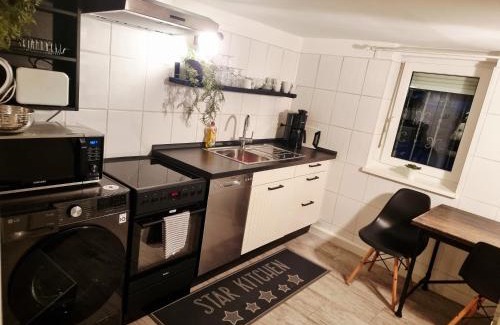 Ferienwohnung Cozy und Hugley in Neuenstein offers a comfortable apartment with free WiFi, a private bathroom, and a fully equipped kitchen. Guests can enjoy amenities such as a washing machine, work desk, and TV.Modern Facilities
