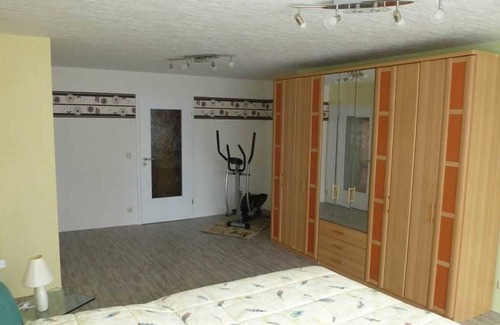 Large, bright bedroom with large double bedSleeping and living areaFully equipped kitchen: dishes, fridge, stove, microwave, kettle, toaster and dining area, toilet and showerInternet via W-LAN, parking space for your car-comfortable apartment