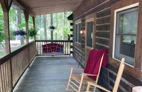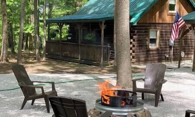 Welcome to your serene cabin retreat in the woods, our true log cabin offers a perfect blend of rustic charm and modern comfort.