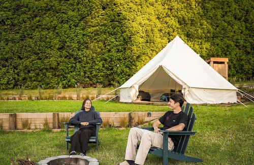 We recommend you come prepared with layers, waterproof jackets, head torches and any other gear you may need to enjoy your outdoor experience. Please note that there is no heating inside the tent.