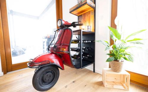 Food & DrinkWine/Champagne, Minibar, Chocolate/Cookies, Tea/Coffee maker, Bottle of waterBathroomBathtub or shower, Bathtub, Hairdryer, Toilet, Private bathroom, Body soap, Free toiletries, Towels, Toilet paper, Shampoo, ShowerMedia & TechnologyRadio, Flat-screen TV, TVGeneralFire extinguisher, Hardwood or parquet floors, Key access, Heating, Hypoallergenic, Soundproof, Smoke Alarm, Iron, Trash cansOutdoorsBarbecue, Outdoor dining area, Outdoor furniture, BalconyKitchenWine glasses, Cleaning products, High chair, Stovetop, Dishwasher, Kitchenware, Electric kettle, Oven, Toaster, Coffee machine, Dining table, Microwave, Kitchen, Refrigerator, Washing machineLiving AreaDining area, Sitting area, SofaBedroomLinens, Childrens' cribs, Wardrobe or closetViewGarden viewBuilding CharacteristicsPrivate apartment in buildingRoom AmenitiesSofa bed, Drying rack for clothing, Clothes rack, Socket near the bed, Non-feather pillowEntertainment & Family ServicesBoard games/puzzles, Child safety socket coversCleanliness & disinfectionHand sanitizer |