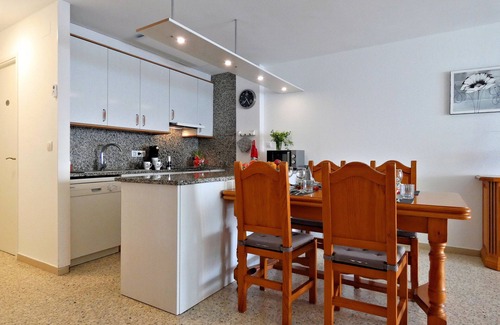 The apartment with 78m² offers enough space for 5 people. The double elevators take you to the 17th Floor of the apartment building, from where you can enjoy a wonderful view of the Bay of Roses with the azure sea.