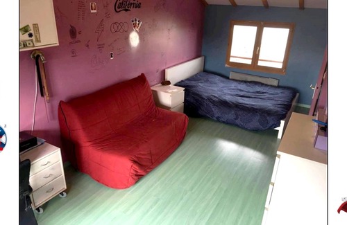 Nice room of 17 m² for 1 to 4 people, bright and air conditioned, it is located in a quiet corner of the house. You will have access to a shared bathroom with a large shower and toilet. The room is equipped with air conditioning, a double bed, a sofa bed and a desk.