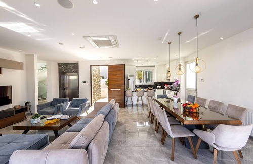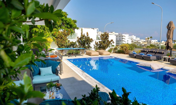 Welcome to our luxurious 6-bedroom villa located in the heart of Protaras, just a stone's throw away from the world-renowned Fig Tree Bay.