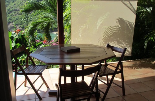 Luxury villa bioclimatic kind Creole surrounded by galleries, classified 4 Epis Gites de France, overlooking the cove and shaded sandy beach of Anse Figuier an area of 110 m2. It is located in a tropical garden and can accommodate up to 6 people.