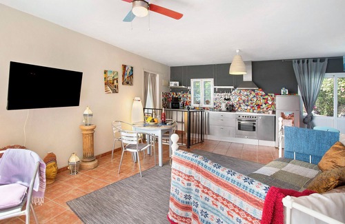 The country house Finca Fani 2, which is situated in Agüimes, overlooks the mountain and the nearby sea. The 80 m² country house consists of a living room, a very well-equipped kitchen, 1 bedroom and 1 bathroom and can therefore accommodate 3 people. Additional amenities include Wi-Fi (suitable for video calls), a dedicated workspace, heating, air conditioning in the living room as well as a TV. There is a shared laundry room with a washing machine.
