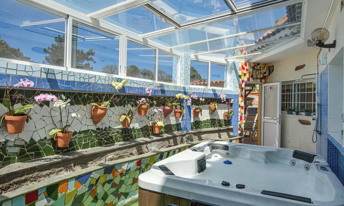 The idyllic holiday home "La Acequia" is situated in rural surroundings, between the municipalities of Firgas and Valleseco, in the north-central part of Gran Canaria.This old traditional Canarian house consists of a living room, a well-equipped kitchen, 2 bedrooms and 1 bathroom, and can accommodate 4 people. Additional amenities include Wi-Fi (suitable for video calls), a fan, an 1800 W electric cooker (imitation fireplace), an electric heater in the bathroom, a dehumidifier, a washing machine, two televisions and a high chair (on request). In the private outdoor area, you will find an outdoor terrace with a large dining table and a stone barbecue, where you can enjoy pleasant evenings savouring a glass of wine or a delicious dinner.Attached to this space, the house has a large terrace with a glass roof where you will find a hydromassage area (4-seater spa), a shower tray, an irrigation ditch with a permanent water and fish spring, a fabulous orchidarium, and integral chromatic Led lighting, all designed to provide a complete disconnection from the daily routine. The property is located in the Doramas Rural Park, an area full of places of incalculable scenic interest and a multitude of trails.Privacy, intimacy and 100% guaranteed comfort.The house is located halfway between the mountains and the beach, only 20 minutes by car (15 km) from the beaches of Bañaderos or Las Canteras in the capital of the island. The nearest supermarkets are less than a 10 minute drive (4km) away in the nearby villages of Valleseco and Firgas, although there are more local amenities in Las Palmas, the island's main city, which is a 20 minute drive (22km) away.The distance from "La Acequia" to the airport is 40km and to the main tourist centres in the south of the island 60km. Any tourist attraction in the North, Centre or Cumbres de Gran Canaria can be reached in 30 minutes by car.
