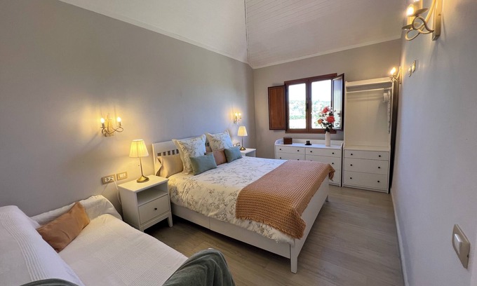 The Arcángel Miguel Apartment is about 60 square meters in size and has two bedrooms: one with a double bed and the other with two single beds. It can accommodate up to 5 people. It also includes a full bathroom. Like Casa Cupido, it is beautifully decorated with all the necessary details for a comfortable and modern stay. The apartment also offers Wi-Fi, a Smart TV, a fully equipped kitchen, and a washing machine. We provide bed linens, bath towels, and beach towels to ensure a pleasant and comfortable stay