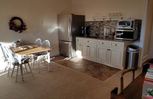 Relax in a fully furnished apartment, with private, wheel chair accessible entrance. Sleeps two on a king bed with private bath. The living room offers a couch with full service TV (HBO, ESPN, CNN/Fox news, Netflix), internet and free WIFI. The kitchen is perfect for dining, equipped with microwave, toaster oven, induction hot plate and full size refrigerator with ice maker. Soak in the mountain views from your private porch swing overlooking 24 acres of pasture. Immerse yourself in Civil War history, explore surrounding National Forest, enjoy scenic drives, sample local wineries and breweries, and feast at nearby vibrant restaurants. Learn self sustaining farming at world renowned Polyface Farms. Soak up the sounds Heifetz international concert series in July - August plus authentic plays at Shakespeare Blackfriars Playhouse. Walk through early Americana time at Frontier Culture Museum.