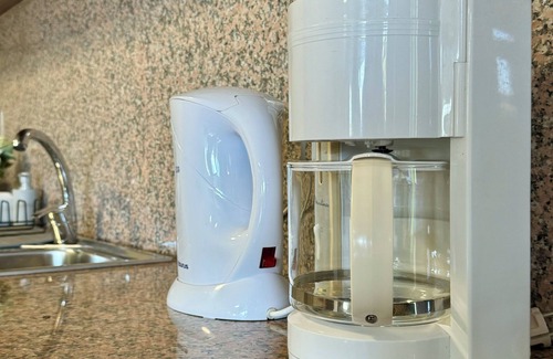 The kitchen is equipped with a stovetop and a refrigerator, as well as a coffee maker, an electric kettle, and a microwave. Connect to the free WiFi, or get cozy in front of the cable/satellite TV. Bathroom amenities include towels, toilet paper, and soap. And because there's a washer and dryer, you can go a bit lighter on your packing. Other amenities at this 2-bedroom, 1-bathroom rental include a living room, bed sheets, and a dining table.