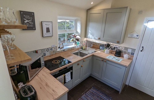 The quirky cottage which was formerly the village Post Office and has recently undergone extensive renovations to turn it into the bolt-hole it is today. The cottage is split over three levels and has two double bedrooms with lovely views of the quiet village. Walking into the cottage, on the ground floor is the kitchen with its stone flag flooring and small counter-top oven with 2 ceramic hobs and a microwave ideal for cooking simple meals. There's also a toaster, kettle and coffee machine. The cosy lounge/dining area is two steps down and boasts an impressive log burner - ideal for the cooler Autumn and Winter evenings - and a comfy three-seater sofa and chair.