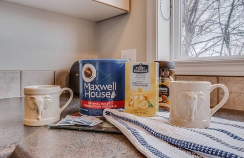 When you first enter the home through the front door you will immediately see our lovely veranda where we have some seating for our guests that like to spend some time outdoors. Upon entering the home you will be on the main level and our front entry area introduces you to our open concept main floor. On this level we have a large living room that is furnished with 2 comfy couches, a large flat screen TV and gas fireplace to keep you cozy. Next you will see our dining area that has a beautiful wood table with enough seating for all 6 guests to enjoy meals together or use as a collaborative work space. Behind the dining area is our Kitchen that features a centre island with additional seating space. In the kitchen we have taken great care to stock the cupboards with all of the tools and necessities you will need when preparing or serving meals. Finishing off the main floor is the powder room and back entry door leading you to our backyard. patio, BBQ & Garage.