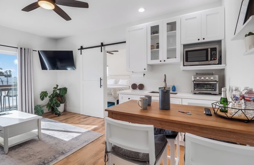 Delight in a holistic wellness experience with a Finnish sauna, soothing hot tub, and invigorating cold plunge, all within the tranquil embrace of this beautifully crafted condo. Begin your day effortlessly with fresh coffee and delectable breakfast bites, just moments from your door. This serene retreat offers the perfect balance, only a 5-10 minute stroll to the pristine sands of Oceanside Beach, the iconic Oceanside Pier, and the vibrant Downtown scene. For your convenience, the kitchenette features a single-burner cooktop and an 8-in-1 bake/air-fryer, ideal for preparing light meals. A signed release waiver is required.