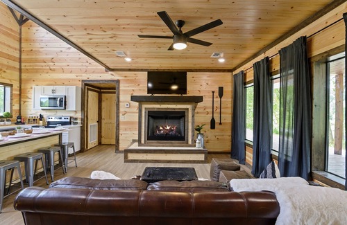 ★“My family and I really enjoyed our time in the River Rock Retreat cabin. It was exactly what we needed for our Memorial Weekend vacation. The cabin was beautiful, well stocked, and very clean. My parents enjoyed the coffee daily. The river and woodland scenery was just gorgeous! My teens loved being able to swim, play pool, and make s'mores over the firepit. The hosts were very responsive and helpful. We definitely recommend booking this cabin.”★