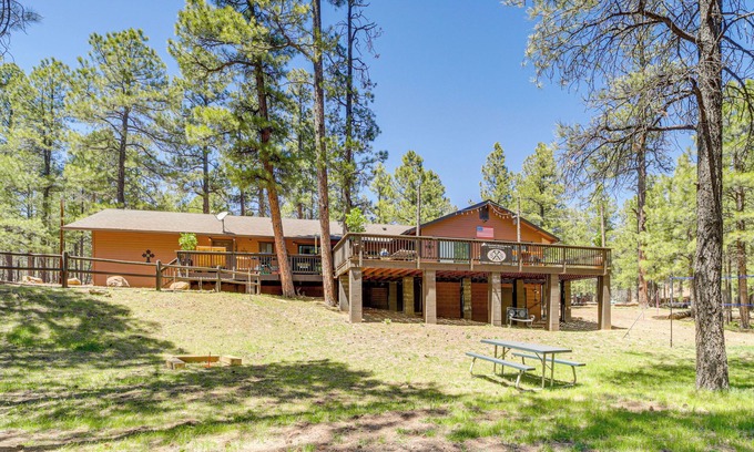 Fire Pit + Trail Access: Spacious Happy Jack Cabin is located in Happy Jack. Fire Pit + Trail Access: Spacious Happy Jack Cabin provides accommodation, featuring Pet Friendly, TV, Bedding/Linens, among other amenities. This Cabin features Pet Friendly, TV, Bedding/Linens, to make your stay a comfortable one.
