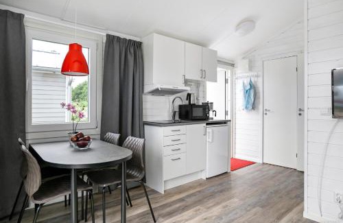 First Camp Kärradal-Varberg in Varberg provides accommodations with a bar, barbecue facilities, and a shared lounge. This beachfront property offers access to a patio, free private parking, and free Wifi. The campground provides garden views and a sun terrace. At the campground, all units come with a wardrobe. A microwave, a fridge, and stovetop are also provided, as well as a coffee machine and a kettle. At the campground, each unit is equipped with a seating area. Guests can eat at the on-site family-friendly restaurant, which is open for dinner, cocktails, and high tea. Guests can stay active with the fitness classes held on site. For guests with children, the campground offers an indoor play area, outdoor play equipment, and a kids' club. Horse riding and cycling can be enjoyed nearby, while a bicycle rental service and water sports facilities are also available on-site. Varberg Train Station is 6.4 miles from First Camp Kärradal-Varberg, while Gekås Ullared Superstore is 24 miles away. Halmstad Airport is 50 miles from the property.