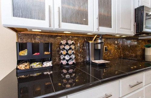 - Full kitchen with refrigerator, stove, dishwasher, microwave, toaster & coffee maker!