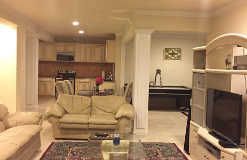 It is an excellent option for travels who like a Furnished, spacious and bright place to stay. This First level of the house includes two private bedroom and one bath, Stainless steel kitchen amenities ( Big refrigerator, oven, and dishwasher, Toaster and coffee maker,...). That is what every body appreciates. The private pathway on the back yard is a plus which guides you to your own private entrance door. There is a FREE Wifi, and cable Tv available to enjoy your stay.