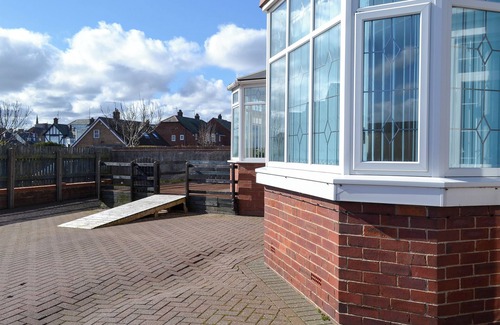 Separate Toilet.. Gas central heating, electricity, bed linen, towels and Wi-Fi included. Travel cot and highchair. Welcome pack.. Enclosed couryard. Private parking for 1 car, additional on road parking. No smoking.. This ground floor apartment is just across the road from the beach and is perfect for a family holiday. The courtyard to the rear of the property is enclosed, and there is a ramp entrance directly into the conservatory for easy access. Guests are welcome to use the restaurant, bar and entertainment facilities at the Hotel Expanse which belongs to the same owner. The apartment has a spacious kitchen/dining area with all modern amenities, and French doors lead into the bright conservatory.