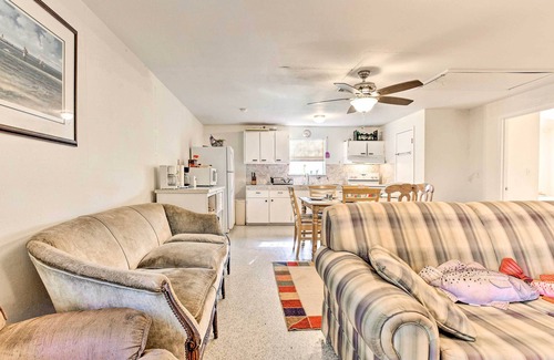 Enjoy endless days on the water during your Palacios getaway when you book 'Las Brisas,' a 2-bedroom, 1-bath waterfront vacation rental on Carancahua Bay. This house is a fisherman's paradise, with access to a boat launch, a pier with lights for night fishing, and kayaks available to rent. After your days' adventures, kick back on the deck overlooking the bay or grill up your catch of the day in the kitchen before retiring to one of the modestly decorated bedrooms for a restful night's sleep.