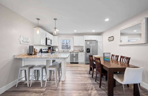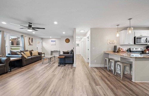 Our home has 4 bedrooms and 2 full baths, a fully stocked and beautifully renovated kitchen, and not just 1 but 2 spacious entertainment spaces! Sleeping 14 guests comfortably, this home was created with large families in mind!