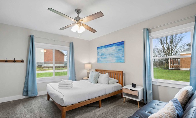 This home is located on a quiet street right next to the beautiful Piddle Park. The park includes basketball courts, a stocked fishing lake, skate park, tennis courts, and even a playground. We're a quick 10-minute drive to the Ark Encounter and close proximity to grocery stores, wedding venues, and restaurants. An ideal stay for large groups or families featuring 4 bedrooms, 2 baths, private backyard and 2 open concept living spaces with plenty of room to entertain and reconnect. With a playground, baseball field, and Lakefront right at your backdoor this stay is bound to be one you'll want to take again!