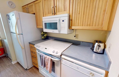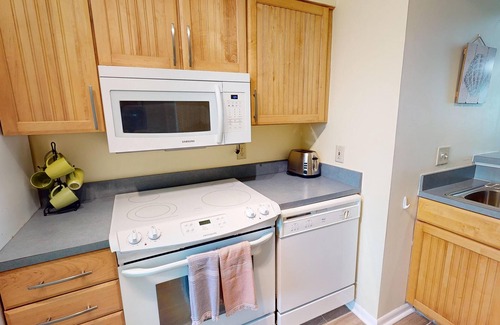 This spacious condo is two stories. The first floor features a living room with cozy furniture and a TV with streaming services. The kitchen is stocked with appliances to make your favorite dishes and the dishwasher adds ease to your vacation. Gather at the dining table or on nice evenings, dine on the screened-in porch. Upstairs there are two bedrooms with a king bed and two twins. Both full bathrooms have shower/tub combos. The master bedroom has a balcony that overlooks the river. There is an in-unit washer/dryer.