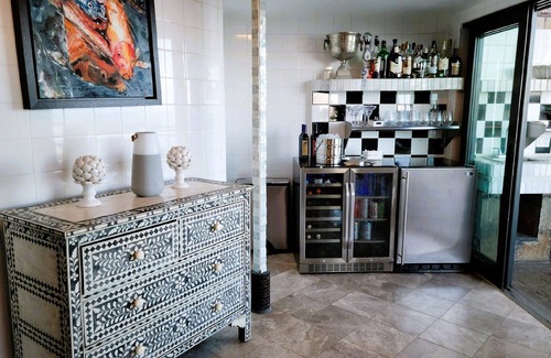The "Guest Villa," which has two bedrooms and two and a half baths, as well as its own living room and kitchen, opens onto a second adjacent pool and a fantastic outdoor bar and grill.