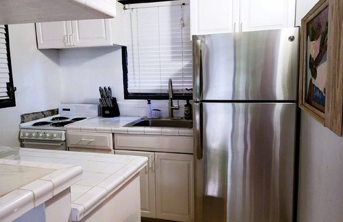 The charming "Garden Villa" is a private one-king bedroom cottage with its own living room/kitchen and garden balcony.