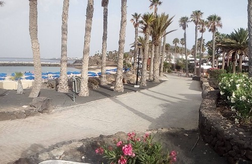 Indoor Spa area with heated pool over 16 years , Jacuzzi ,massage rooms, sauna and gym ( local charge ) surrounded by tropical cactus and palm gardens. There is a rooftop sun bathing area with wonderful sea views. Also for the children there are soft play areas and games area. There are on-site supermarkets and a selection of lovely beach front bars and restaurants a few minutes walk away. This bungalow is located just yards from the beautiful, sandy Playa Flamingo beach and coastal promenade leading to the old harbour with daily ferries to Fuerteventura .