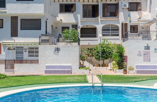 This incredible apartment is close to the beach, perfect for those who would like to spend their holiday relaxing by the sea. This apartment has access to a garden, communal pool, and terrace. The sitting room is tastefully decorated with a TV and air-conditioning. It is conveniently situated next to the supermarket.