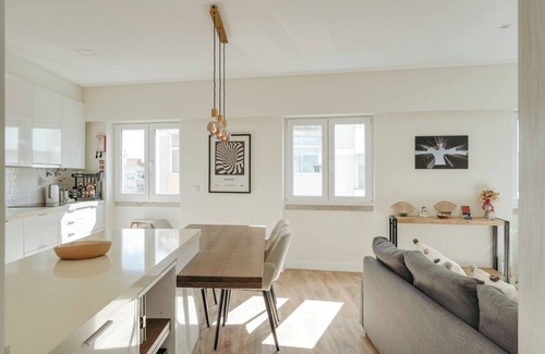 Nestled in a quiet residential street in the Ajuda area, this renovated apartment blends functionality with modern design. One of the bedrooms features a double bed and opens onto a small balcony, perfect for enjoying your morning coffee. The second bedroom doubles as a dedicated office with two monitors, an ergonomic chair, and fast Wi-Fi, a dream setup for digital nomads or anyone working remotely.