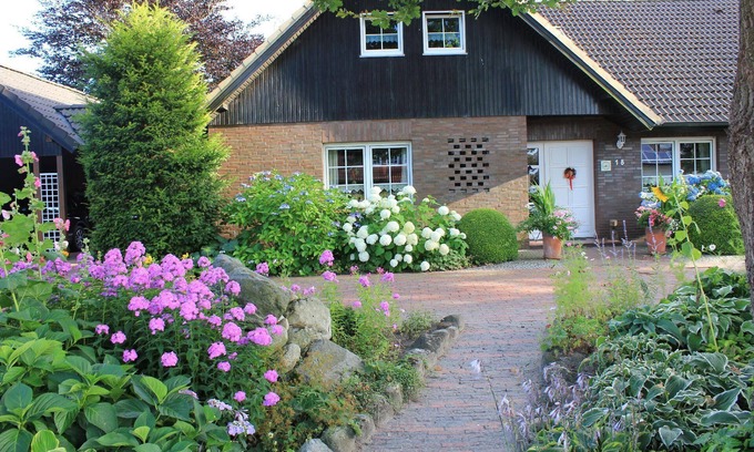The holiday flat is located in Altjührden, a district of the town of Varel. Here is a starting point for excursions into the surrounding area by car or bicycle: to the southern Jade Bay to Dangast, to the North Sea to Wilhelmshaven or Bremerhaven, inland to East Frisia, to the beautiful Ammerland, e.g. to Westerstede, Wiefelstede, Rastede and to the Bad Zwischenahner Meer or to Oldenburg. Hiking is also possible, along the mill pond, through the nearby Varel forest, the Neuenburg primeval forest or the Herrenneuen, which is only 1 km away. Wellness fans are also catered for, with the sauna area at the Mühlenteich nearby. Cosy, child-friendly holiday flat with balcony surrounded by a wonderful communal garden, enjoy the wide range of leisure activities and excursion destinations, try the regional cuisine and simply relax in one of the secluded garden seating areas