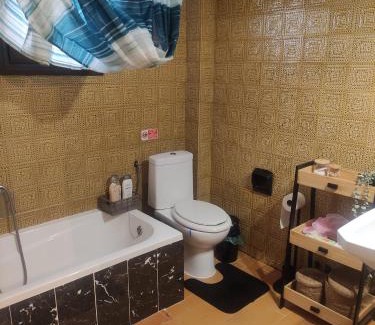 Food & DrinkChocolate/Cookies, Bottle of water, Tea/Coffee maker, Wine/ChampagneBathroomBathtub or shower, Conditioner, Toilet, Private bathroom, Hairdryer, Towels, Shampoo, Toilet paper, Bathtub, Slippers, Body soap, Free toiletriesMedia & TechnologyTV, Flat-screen TV, Pay-per-view channels, Streaming service (like Netflix)GeneralKey card access, Heating, Mosquito net, Trash cans, Air conditioning, Ironing facilities, Fan, Iron, Smoke Alarm, Fire extinguisher, Key access, Tile/Marble floorKitchenCoffee machine, Wine glasses, Electric kettle, Kitchenware, Cleaning products, Oven, Stovetop, Refrigerator, Washing machine, Kitchen, Dining table, KitchenetteOutdoorsBalcony, Outdoor furniture, Outdoor dining area, TerraceLiving AreaSitting area, Sofa, Desk, Dining areaBedroomWardrobe or closet, Linens, Walk-in closetAccessibilityUpper floors accessible by stairs onlyBuilding CharacteristicsPrivate apartment in buildingRoom AmenitiesClothes rack, Fold-up bed, Hypoallergenic pillow, Sofa bed, Socket near the bedEntertainment & Family ServicesBoard games/puzzlesViewQuiet street viewPhysical distancingSingle-room AC for guest accommodationCleanliness & disinfectionHand sanitizer |