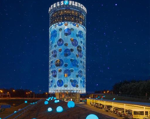 This futuristic shaped Fletcher hotel is located within a 2-minutes’ drive from the A2 and A9 highways. It offers free WiFi and modern rooms with a flat-screen TV. Metro station Holendrecht is a 15-minute walk. Each room has a view over the direct surroundings and offers a work desk. The shower is in a glass cylinder column in the middle of the room. Fletcher hotel provides breakfast, lunch and dinner in its Skyrestaurant Pi restaurant which has a panoramic view over Amsterdam. Drinks can be enjoyed in the Skylounge Pi. Guests can relax on the terrace if permitted by weather. The 24-hour front desk offers service when needed. Amsterdam Arena and Amsterdam South Axis are all within a 10-minute drive away from Fletcher Hotel Amsterdam, while Amsterdam RAI is 4 mi and Amsterdam Schiphol International Airport is 20 minutes by car. The city center is a 15-minute drive.