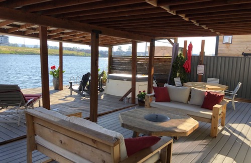 Floating home, front row is located in Hayden Island. Floating home, front row provides accommodation, featuring Ocean View, Security/Safety, Wellness Facilities, among other amenities. This House features Ocean View, Security/Safety, Wellness Facilities, to make your stay a comfortable one.