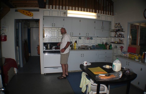 This self-catered and self-operated cabin has four bedrooms and can sleep a maximum of 6 guests. The bathroom has a shower with hot water and there are 3 bedrooms with double beds and a bunk room which can sleep 4 people in single bunks. The cabin offers a fully equipped kitchen and indoor/outdoor living space and includes a gas barbecue and a gas fire pit. Fresh water is gravity fed to the cabin and is processed through a UV filtration system. Electricity is generated by a gasoline powered Honda Generator. The fridge, range, fireplace hot water, run on propane; the upright freezer and ice machine are powered by the generator. The 110V AC lighting is backed up by a 12V DC lighting available throughout the cabin. There is a fish-cleaning table and cooler storage area.