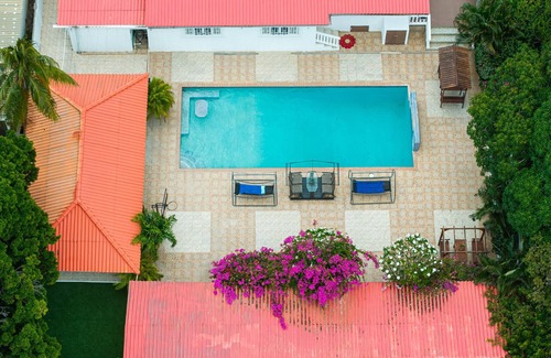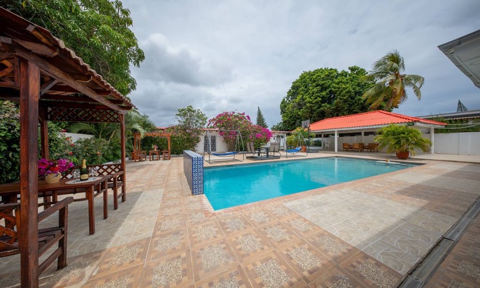 Spacious Modern Villa with Private Pool near Willemstad, Curaçao Welcome to your home away from home in vibrant Willemstad! This stylish and spacious villa comfortably accommodates up to 8 guests, making it the perfect retreat for families or groups of friends. Enjoy the best of both worlds lively city life just minutes away, and your own peaceful oasis to unwind. 4 Inviting BedroomsMaster SuiteKing-size bed, large walk-in closet, flat-screen TV, private bathroom with jacuzzi and shower, fitness bike, and a massage table for ultimate relaxation.Second BedroomKing-size bed, TV, spacious desk for remote work, plus a boxing bag and keyboard perfect for both fitness and creativity.Third BedroomQueen-size bed, large closet, comfortable work desk and chair ideal for digital nomads.Fourth Bedroom (Kid-Friendly)Queen-size bed and a large closet, cozy and practical for younger guests or additional adults. Fully Equipped KitchenEverything you need to prepare delicious meals at home, including:Coffee makerOvenMicrowaveRefrigerator 3 Full Bathrooms 1 Guest ToiletModern and functional, designed for convenience and comfort for all guests. Living Dining SpacesSpacious Living RoomLocated at the villa’s entrance a perfect place to relax after a sunny day.Elegant Dining AreaLarge dining table seating up to 10 guests, perfect for group meals and celebrations. Modern Comfort High-Speed ConnectivityAir conditioning throughout the villa for year-round comfortFast Wi-Fi, ideal for streaming, video calls, or remote work Outdoor Oasis Your Private Pool MoreEnjoy your 500 m² private terrace featuring:Refreshing swimming poolBBQ area and outdoor dining spaceSun loungers for ultimate relaxationOutdoor shower to cool off under the Curaçao sunAt the front of the property:Football field for fun and gamesAdditional terracePrivate garage with secure parking Your Ideal Curaçao EscapeWhether you’re here for fun, relaxation, or remote work, this villa offers it all. Book your tropical getaway today and experience Curaçao’s charm in comfort, style, and convenience! House RulesAir Conditioning: Please turn off air conditioning when not at home to conserve energy.Parking: Two private parking spaces inside, plus space for up to three cars in front. Please park considerately to respect neighbors.Security Cameras: Installed at entrance and parking area for your safety; no indoor/private area recording.Bicycles: Two bicycles available for guest use. Please return them in good condition to their original place.On-Site Assistance: A dedicated staff member is available for maintenance and guest support—don’t hesitate to reach out!