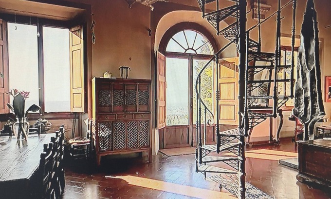 .A monumental staircase from the main living room takes you down to the private garden at the front of the villa where guests can watch the glorious sunsets over Florence while eating alfresco. Garden lovers will find many interesting ,unusual plants and lots of work to get on with if they fancy !