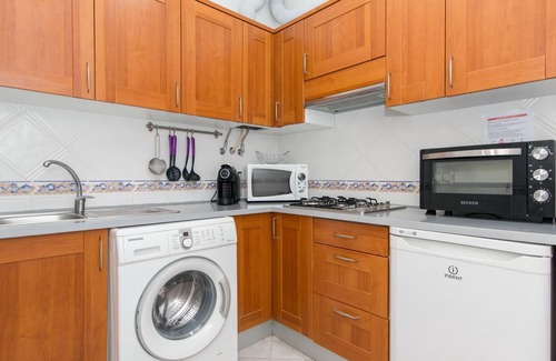 The kitchen, equipped with a washing machine, allows you to easily prepare your favorite meals with fresh, local ingredients readily available at Tavira's traditional markets.