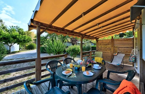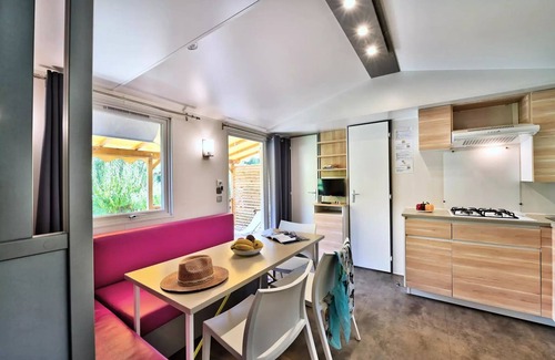 Flower Camping La Chataigneraie * - Mobil home Premium 31m2 (3 bedrooms) + covered terrace + Dishwasher + TV + Air conditioning 6 people is located in Anneyron. Flower Camping La Chataigneraie * - Mobil home Premium 31m2 (3 bedrooms) + covered terrace + Dishwasher + TV + Air conditioning 6 people provides accommodation, featuring Air Conditioner, TV, Balcony/Terrace, among other amenities. This House features Air Conditioner, TV, Balcony/Terrace, to make your stay a comfortable one.