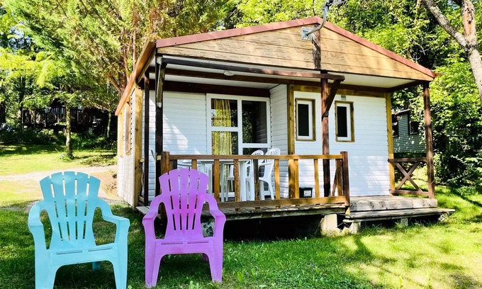 Flower Camping LA GDPOLA * - Chalet Châtaignier Standard 23m2 - 2 bedrooms + covered terrace 8m2 5 people | Ski Chalet in CAMON