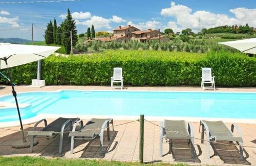 Agriturismo "Villastrada", surrounded by fields. 3 apartments in the property. In the resort Cantagallina, 15 km from the centre of Castiglion Del Lago, on top of a hill, 15 km from the lake, in the countryside. For shared use: garden 1'000 m2 (fenced), swimming pool (13 x 5 m, depth 140 - 200 cm, seasonal availability: 01.Jun. - 30.Sep.). Barbecue, children's playground. In the house: fitness room, washing machine (extra), heating available only from 15.Oct. - 15.Apr.. Motor access (1.5 km via unmade road). Roofed, parking. Shop 4 km, grocery 4 km, supermarket 4 km, restaurant 4 km, bus stop 2 km, thermal baths "Chianciano" 21 km, bathing lake "Trasimeno" 15 km. Riding stable 10 km. Nearby attractions: Chiusi 8 km, Cetona 16 km, Sarteano 18 km, Città della Pieve 20 km, Montepulciano 30 km, Pienza 43 km. Please note: car recommended.