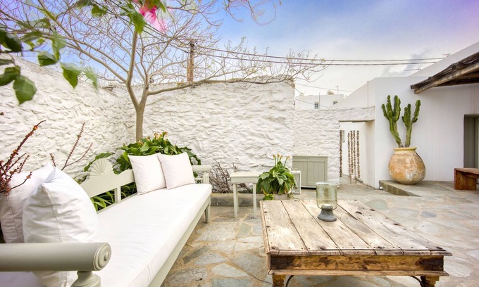 Nestled in the heart of Chora, Folegandros, this Cycladic house embodies the serene beauty & traditional architecture of the island. It features 2 cozy & spacious bedrooms. The living room, adorned with minimal decor & comfortable furnishings, offers ample space for relaxation. The experience completes a well-equipped kitchen and a bathroom with shower. This delightful home offers an authentic l Greek island experience.