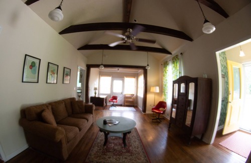 This Fondren cottage is peaceful, comfortable, and close to everything that Fondren has to offer! This charming historical cottage has a kitchen, dining room, living room, sunroom, a large backyard, and off-street parking. This well-equipped home features an updated kitchen with a retro stove, waterlox-finished wood counters, and french doors to the backyard. The backyard deck has a beautiful view of the backyard and opportunities for bird-watching.